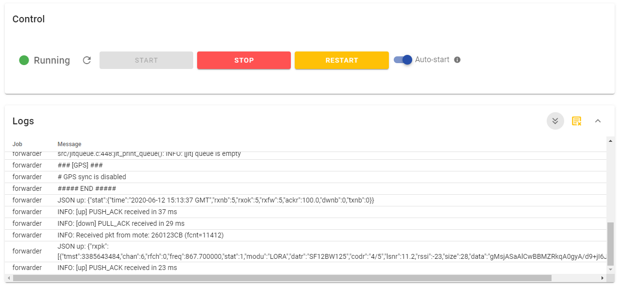 Once you've validated that your network configuration is fine in the previous section, you need to ensure the forwarder is correctly configured to reach the network server, being hosted in the cloud or in your own network.