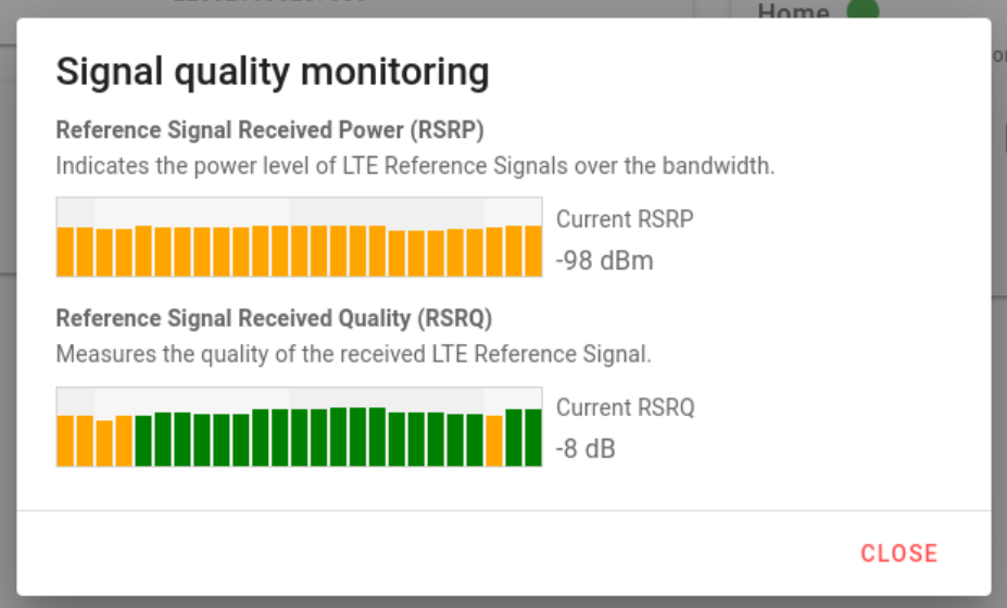 You can check the signal quality details by pressing the (2) button. This will show you a history graph of the signal power and quality.