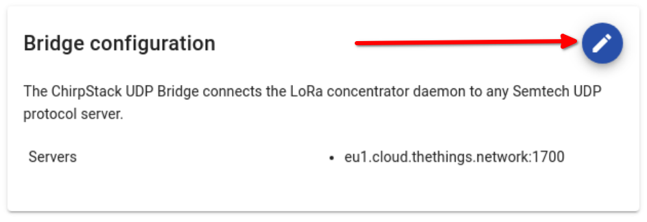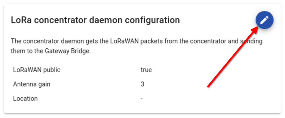 To update the configuration, click on the "Edit" button of the "LoRa concentrator daemon configuration" panel:
