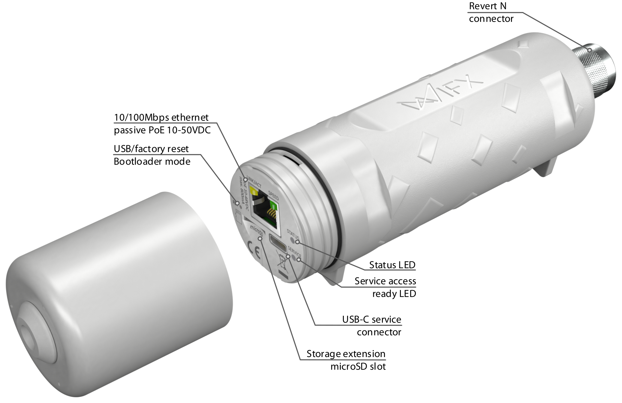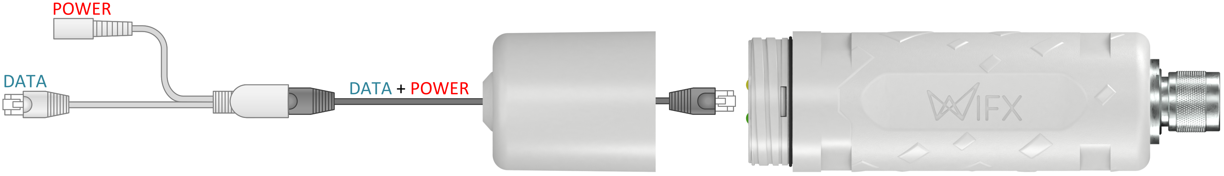 Wifx L1 Setup Current: Prepare the gateway Prepare the gateway Gateway overviewTurn the gateway onThe power is injected through a PoE injector as shown below: If you invert the switch and gateway side, the gateway will not be powered and the switch may get damaged. Power must be injected in the power input connector using the switching power supply provided with the LORIX One only:ReferenceHNP12-240L6Output voltage24VDCOutput current500mA The gateway must never be switched on without a compatible antenna being connected to the Waterproof N connector.When no antenna is connected, the impedance matching to the RF interface is incorrect and may damage the gateway. ×